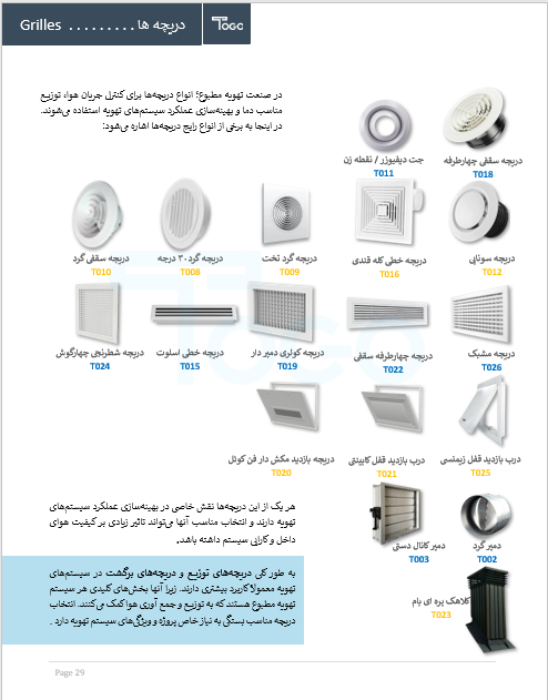 ما در توگو تهویه تمام آنچه برای اجرای سیستم تهویه مطبوع نیاز دارید را در یک بروشور جامع گردآوری کردهایم.