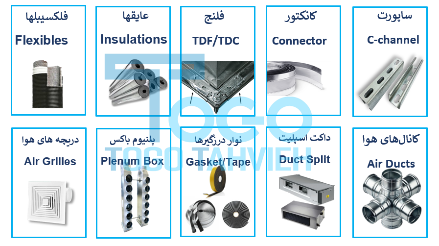 | فلنچها | با ایجاد اتصال محکم و بدون نشتی بین کانالهای هوا باعث کاهش فشار بیش از حد روی سیستم تهویه میشود که میتواند صدای تهویه را کاهش دهد و محیطی آرامتر ایجاد کند. |